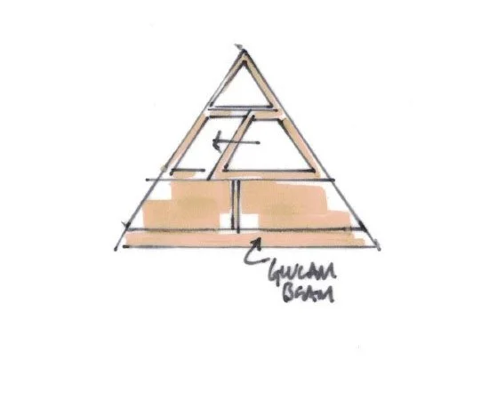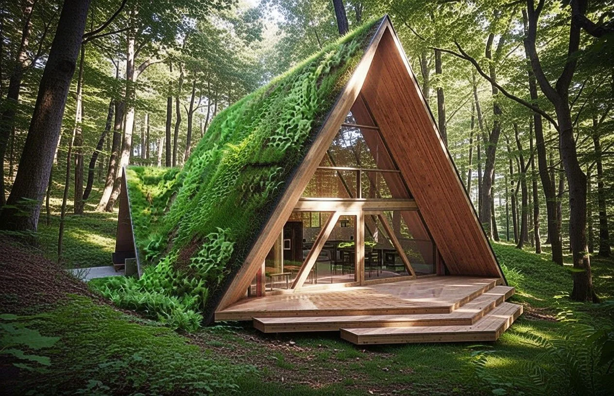 I have always loved A-frame houses, which are ubiquitous around the world. When a client asked for a small cozy, passive A-frame with only 1,000 square feet, we decided to reinvent the form by pouring a slab, nestling it into a gentle south-facing site, and sloping the ridge line to make it appear as if it was emerging from the hill.